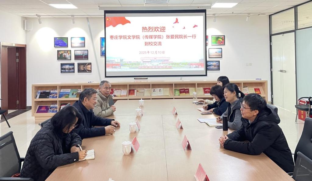 为深化“3+2”贯通培养项目的校际衔接,促进贯通培养学生提前熟悉本科学习环境、树立良好的学习目标,12月10日,文学院(传媒学院)院长张爱民带领广播电视编导专业负责人张宪席、文艺编导教研室主任郭瑞涛等一行4人赴山东传媒职业学院考察交流并参加影视编导专业“3+2”贯通培养班座谈会。山东传媒职业学院党委委员、副院长张卫东,招生就业处处长何东亮,影视制作系主任贾庆萍及影视制作系师生代表参与活动。