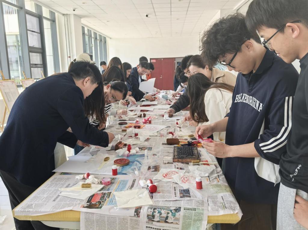 在主旨讲座中,王承略以《中国古籍的流传与价值》为题,从典籍的产生、中国文化原典的出现及流传、古籍流传过程中的厄运、古籍的海外流传及回归、新中国成立后古籍普查和古籍整理事业、适时启动古籍整理定本工程等方面,为师生深入解读了古籍的传承脉络与时代价值,其后的互动交流环节,老师、同学们就古籍保护、古籍阅读等问题向王承略请教交流。主题讲座让师生深刻认识到古籍保护的重要意义,也为我校传统文化育人、专业学科建设注入了新的活力。讲座之后,领导、嘉宾与师生移步报告厅外,观看了入选《山东省珍贵古籍名录》的古籍珍品展板,体验了雕版印刷、瓦当拓印非遗技艺。