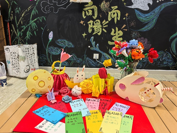 活动紧扣中华文化内涵,设置设置中秋文化溯源、趣味猜灯谜、创意手作工坊等多个特色环节。在文化溯源环节,同学们共同观看主题短片,从“秋夕祭月”的古老仪式,到“但愿人长久,千里共婵娟”的诗词咏叹,沉浸式探寻中秋的历史脉络与文化底蕴;猜灯谜环节其乐融融,融入经典诗句与团圆寓意的谜题引发热烈互动,同学们在解谜过程中分享中秋典故,深化对传统民俗的理解;创意手作工坊里,大家用卡纸裁剪灯笼骨架、以彩笔绘制玉兔纹样,将对中秋的美好祈愿融入一件件鲜活的手工作品中。