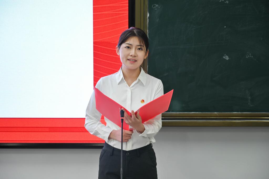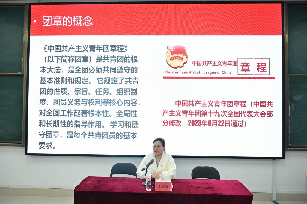 王元元为新发展团员讲授团课,系统阐释共青团的性质与使命,并提出三点期望:树立正确三观,严于律己锤炼品格,始终将国家人民利益放在首位。她勉励新团员以青春锐气勇毅进取,在无私奉献中书写时代答卷。