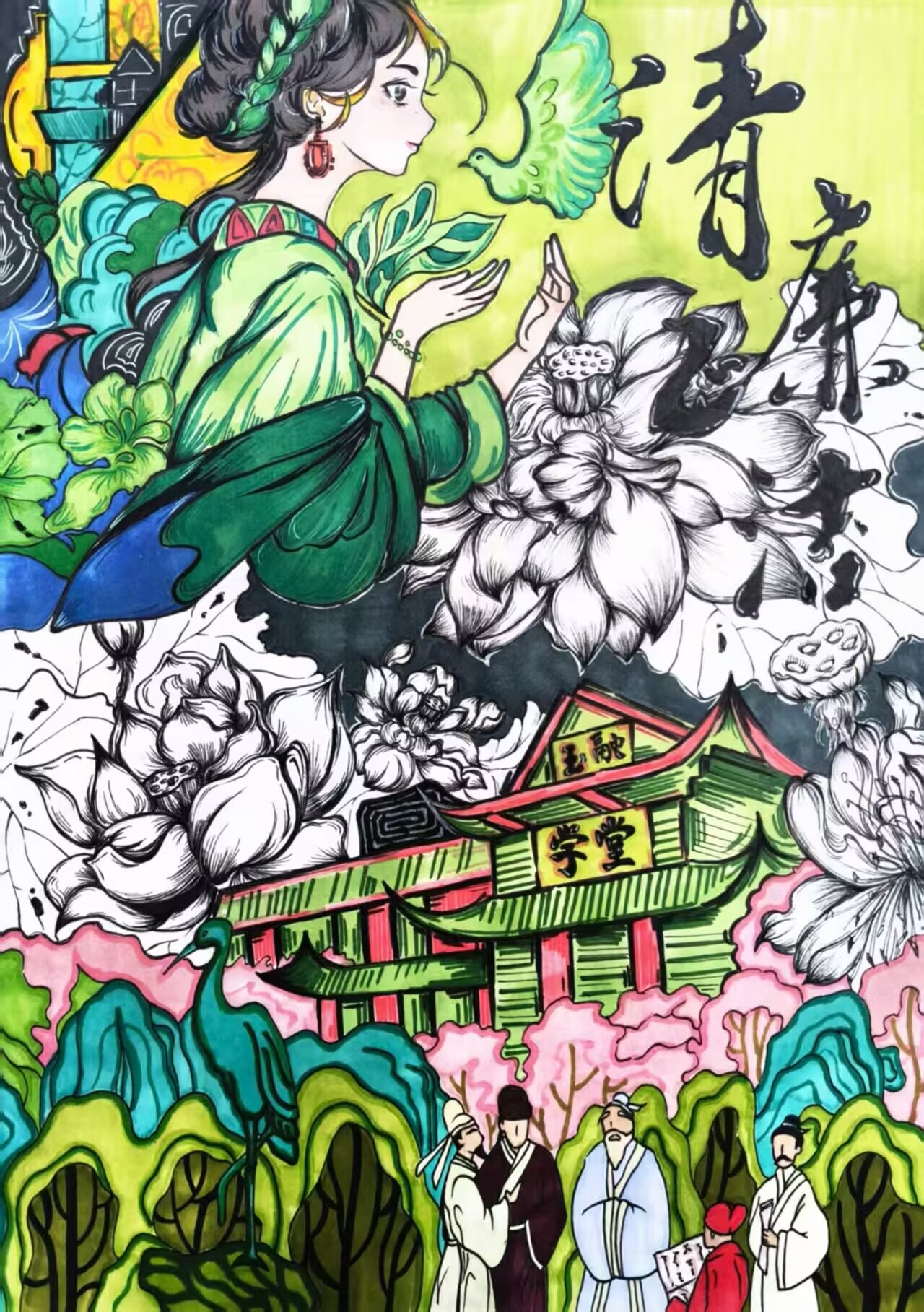参赛选手紧扣主题,从领悟廉洁精神、聚焦青年修身、展望清正社会三个维度展开创作,通过书法、绘画、设计等艺术形式,生动展现了廉洁奉公的典型事例。经评审,共评选出一等奖3名、二等奖7名、三等奖9名。