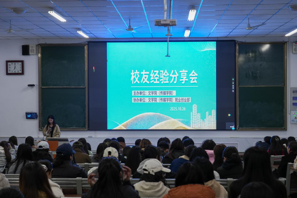 为发挥优秀校友的榜样力量,助力我院学子明确未来目标与发展方向,10月26日晚,文学院(传媒学院)于增信楼112教室举办校友经验分享会,活动采用线上线下相结合的方式,特邀张袆、刘硕、李盈怡、闫俊洁四位优秀毕业生,为同学们带来一场内容充实的分享会。
