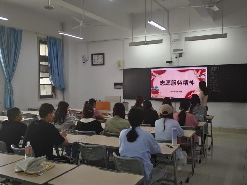 为深入学习贯彻习近平总书记重要讲话和给谢依特小学戍边支教西部计划志愿者服务队队员回信精神,引导青年学生厚植家国情怀、弘扬志愿服务精神,6月5日,文学院(传媒学院)组织2023级、2024级各班级开展“志愿服务精神”主题团日活动。