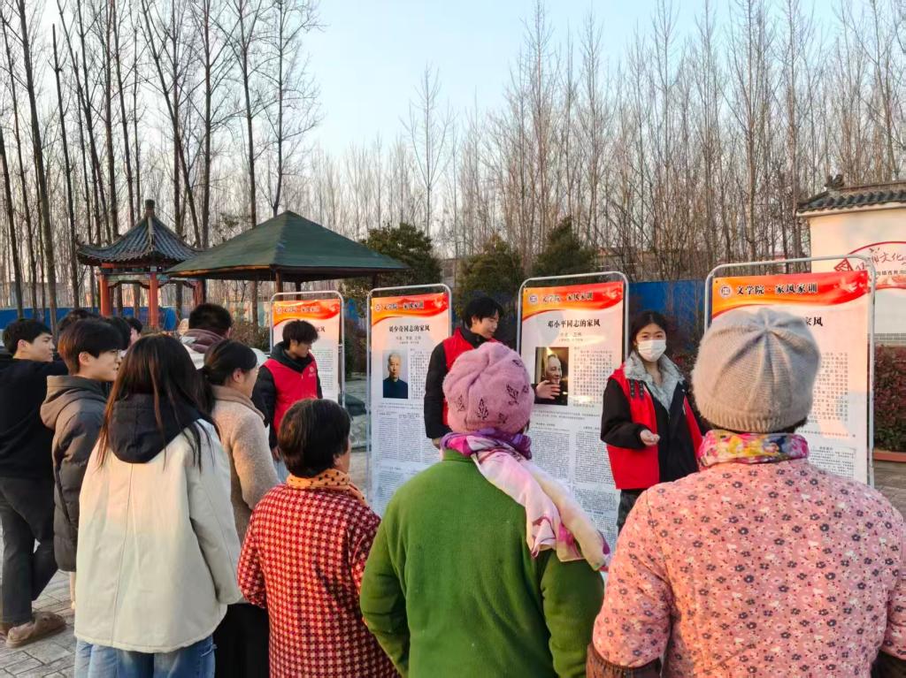 为弘扬中华优秀传统文化,积极响应"百万大学生进社区"实践号召,深化校地精神文明共建,12月12日,文学院(传媒学院)走进薛城区沙沟镇西界沟村,开展"十大名人家风家训"主题宣讲活动,以青春之声传递文明薪火,用文化力量赋能乡村振兴。