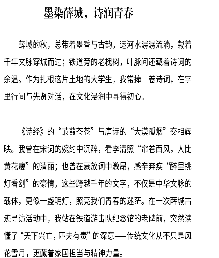 此次大赛的举办,不仅充分挖掘了我校学子的文学创作潜力,促进了学子间的创作交流与灵感交汇,更让传统文学在校园焕发活力。今后,文学院(传媒学院)将持续深耕中华优秀传统文化传播工作,丰富校园文化活动形式,以书香浸润校园,以文化滋养初心,助力校园文化建设纵深发展。