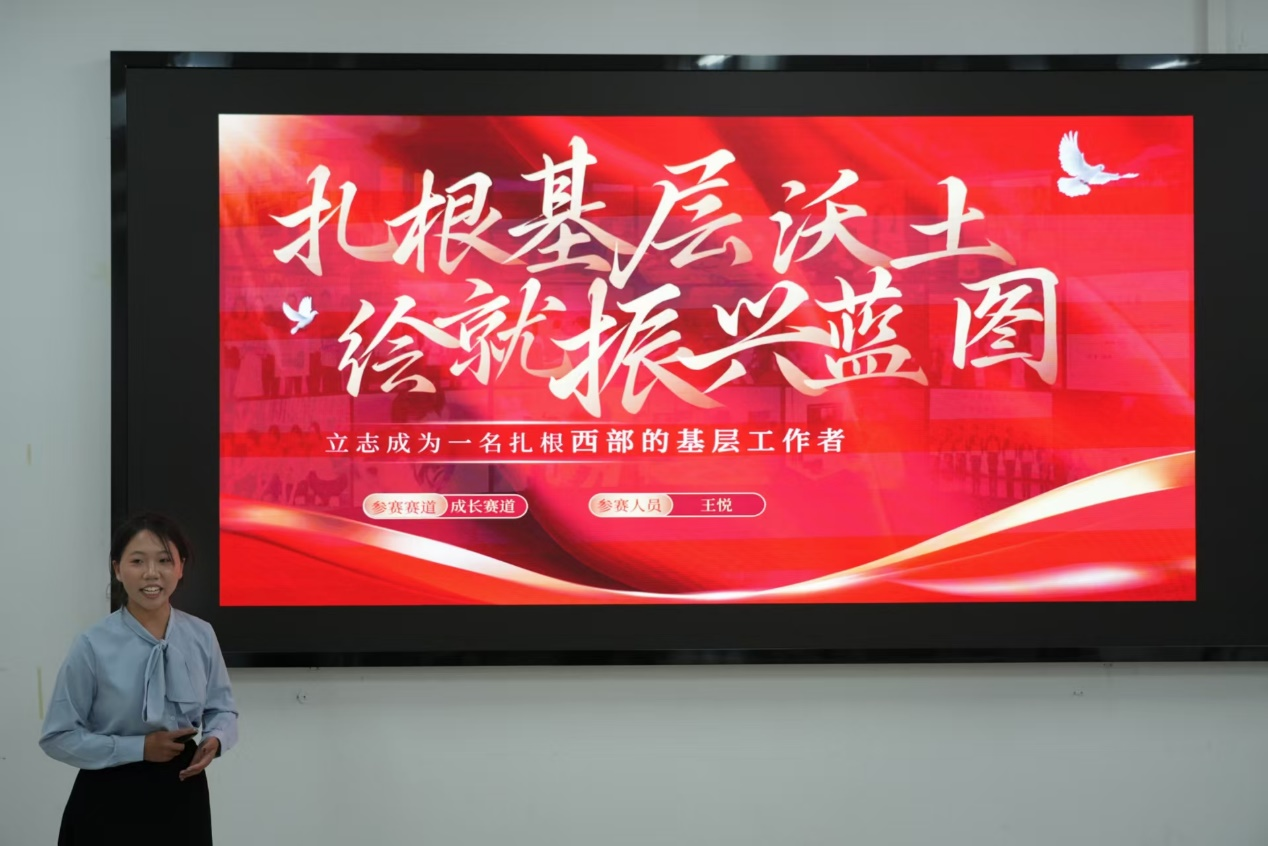 决赛现场,选手们精神饱满、从容自信,结合精心制作的PPT,从职业定位到发展路径,从短期目标到长期愿景,清晰阐述了对未来的深思与规划。每一份方案都展现了扎实的专业素养和独特的个人风格,赢得了评委的频频点头。评委老师认真聆听、细致记录,针对规划的可行性、创新性逐一提问点评,既有精准专业的指导,也有温暖恳切的鼓励。最终,经过激烈角逐,来自23文学本科1班的王悦等学生凭借扎实的规划方案与出色的现场表现,成功晋级校级复赛。