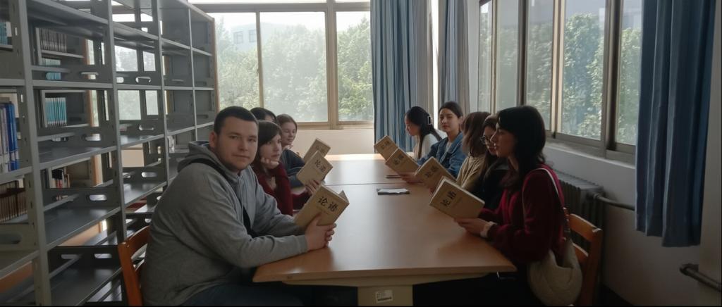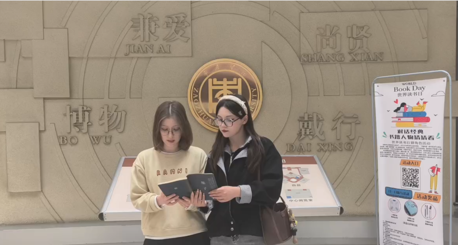 4月23日上午,文学院(传媒学院)汉语言文学专业2026级俄罗斯交换生在校图书馆举办“我们在枣庄学院读书——中俄文学经典诵读”活动。今年4月23日是第31个世界读书日,这次活动是“中俄教育年”背景下汉语沉浸式教学的一次实践。活动由郁辉老师主持。