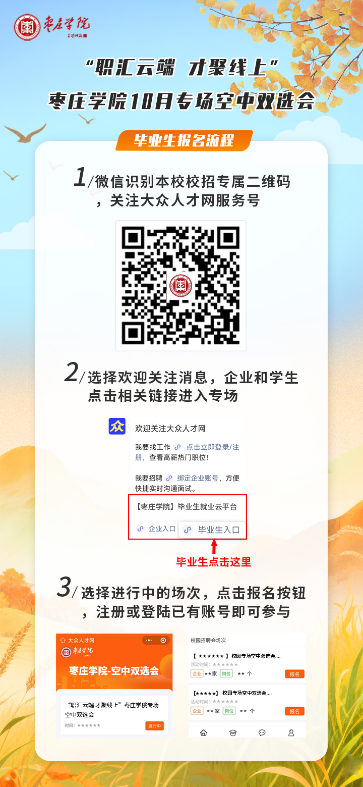 职汇云端 才聚线上 枣庄学院空中双选会邀请函 10月专场